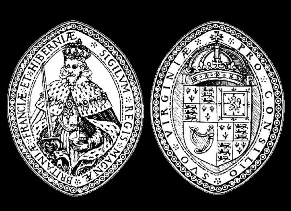 This coat of arms was created to serve as the seal for the Charter of the Virginia Company of London, established by royal charter of James VI/I on April 10, 1606, just three years after prince Charles was born. The purpose of the company was to establish colonial settlements in North America. It was responsible for establishing the Jamestown Settlement in 1607, the first permanent English settlement in the present United States.